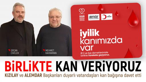 ALEMDAR Başkanı Mehmet KAHRAMAN ve KIZILAY Başkanı Ercan CİVELEK, yapılan bu ortak çalışmada duyarlı vatandaşları kan verme noktalarına davet etti.